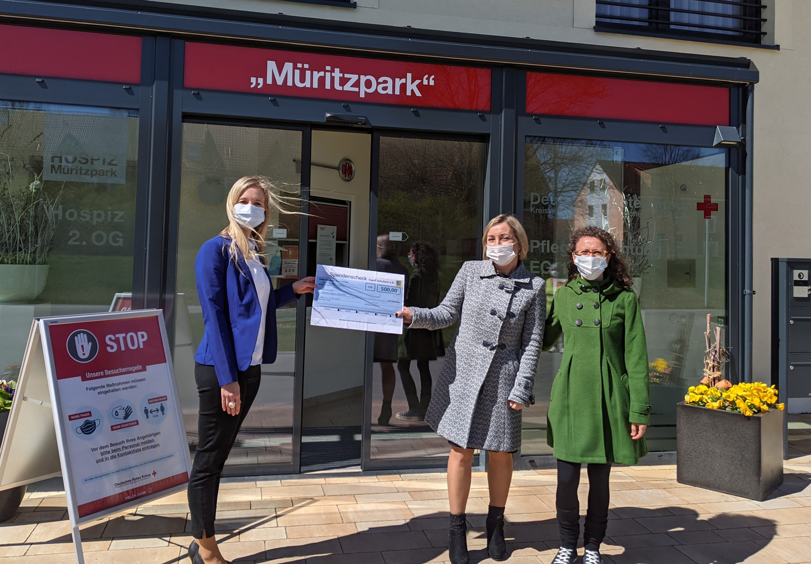 Mit verschiedenen individuellen Projekten werden im Warener Hospiz „Müritzpark“ Herzenswünsche erfüllt. Es sind oft die letzten Wünsche, die den Bewohner aufgrund ihrer schweren Erkrankungen und der noch begrenzten Lebenszeit, bleiben. Aber nicht die Krankheit soll in der Hospizarbeit im Vordergrund stehen, sondern die Lebensfreude. Bei dieser wichtigen Arbeit zugunsten der Hospizbewohner bekommt der „Müritzpark“ Unterstützung von Hospizpaten und weiteren Spendern, so auch jüngst von den EDEKA Märkten Ingolf Schubert. Frau Reger aus der EDEKA-Verwaltung besuchte uns und überraschte Hospizleiterin Claudia Bajorat und Sozialarbeiterin Marie-Louise Pollmer mit einem Scheck über 500 Euro. Im Namen unser Bewohner sagen wir vielen Dank für die Unterstützung des Projektes „Lebensfreude“.